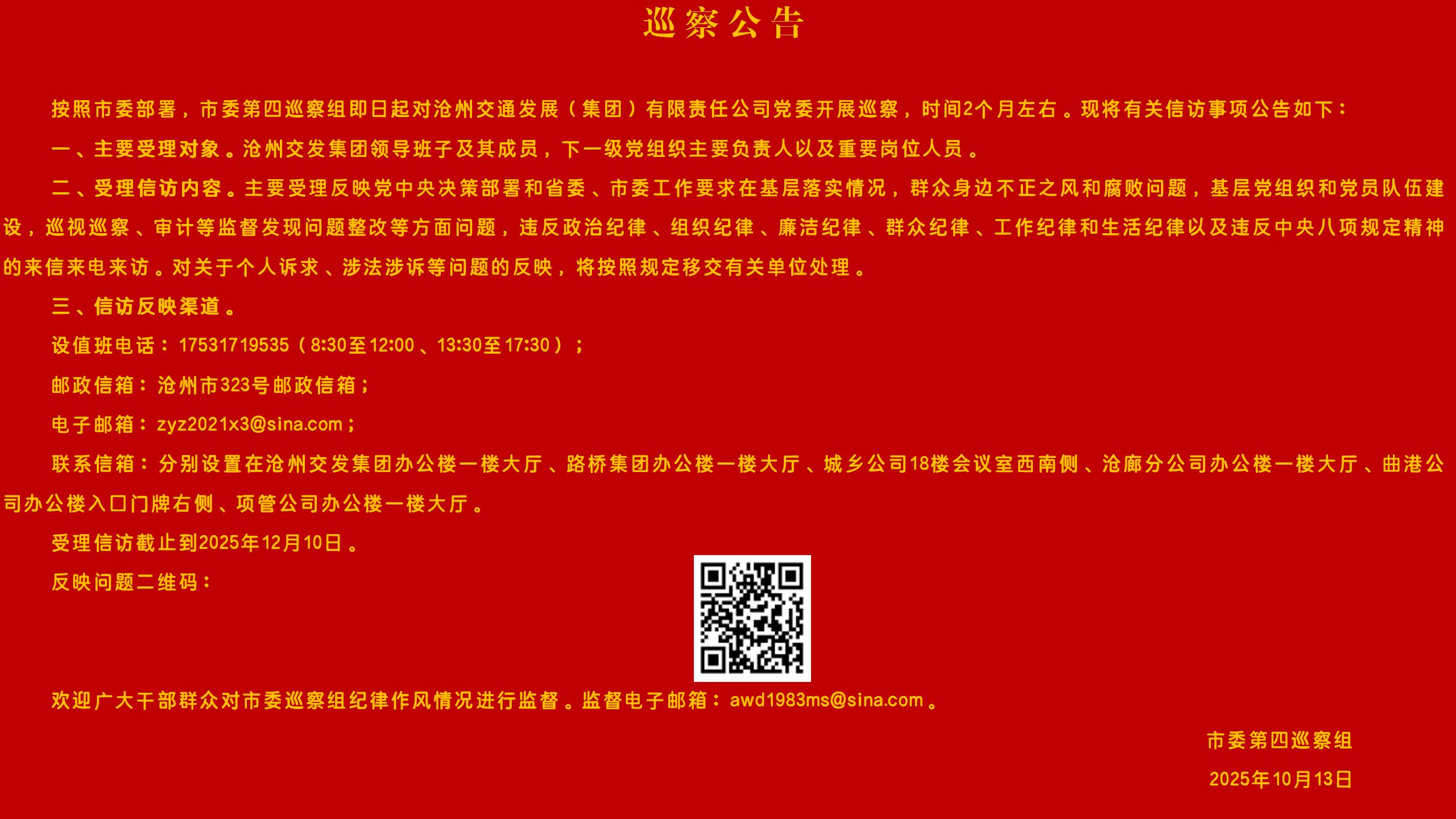 市委第四巡察組巡察 滄州交通發展(集團)有限責任公司黨委 工作動員會召開 2025-10-17